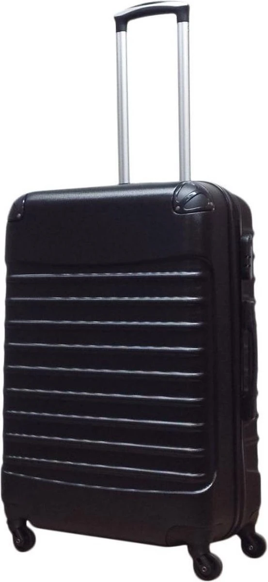 Grote ABS hardschalen koffer in kleur zwart. Koffer is voorzien van een ritssluiting rondom. Binnenin gevoerd en voorzien van tussenschot met ritssluiting en spanbanden. Koffer is op slot te zetten middels een vast cijferslot op de zijkant van de koffer. Handvat op bovenkant en zijkant en voorzien van een comfortabel 4-wiel systeem.