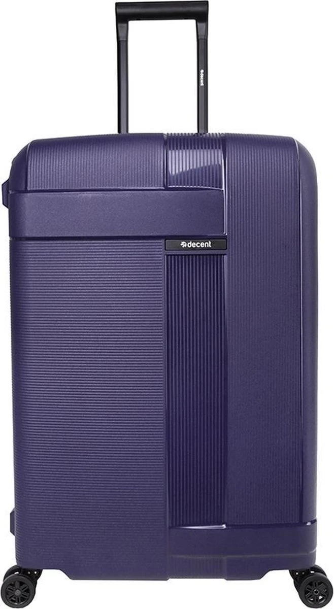 Middelgrote polypropyleen hardschalen koffer uit de Transit serie van het merk Decent. De koffer is rondom voorzien van drie kliksloten. Op de boven-en onderkant zitten sloten die u vastklikt en op de zijkant zit het hoofdslot dat een TSA cijferslot is. De koffer heeft een zwarte voering, een tussenschot met rits, een extra ritsvak en is voorzien van spanbanden. Handvat op bovenkant en zijkant en voorzien van een comfortabel dubbel 4-wiel systeem.