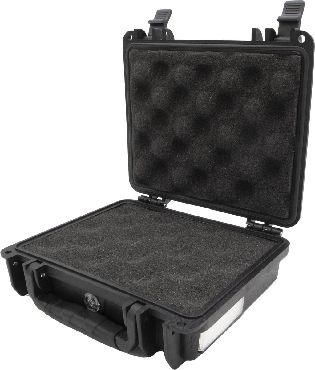 De spatwaterdichte koffer biedt bescherming tegen invloeden van buitenaf, zoals water, lucht en stof. De koffer word geleverd inclusief plukschuim. Dit plukschuim is gemaakt van een foam die shock-proof is.